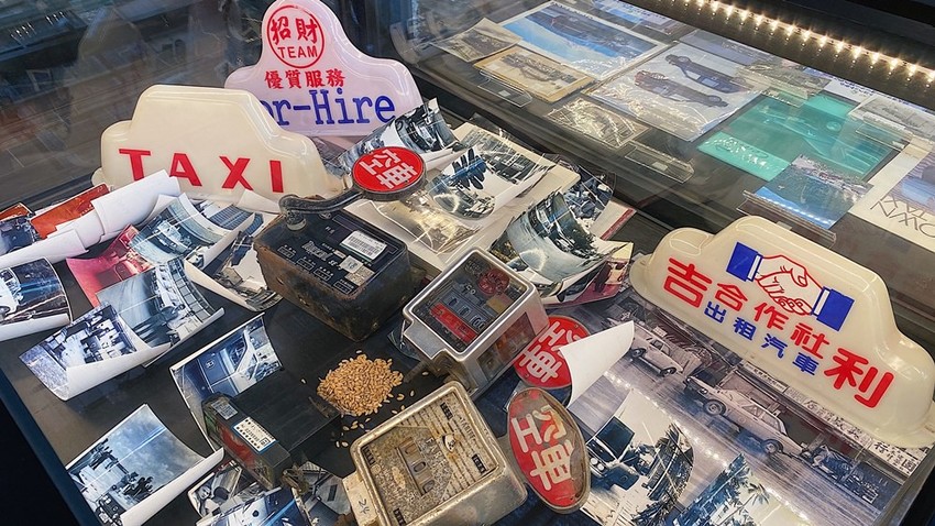 除了總共七台計程車的展品之外,還一格一格展示櫃裡上千件的計程車相關周邊展品。像是鐵皮玩具車、計程車牌,甚至是聯名的服飾配件通通都有