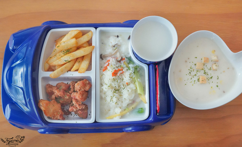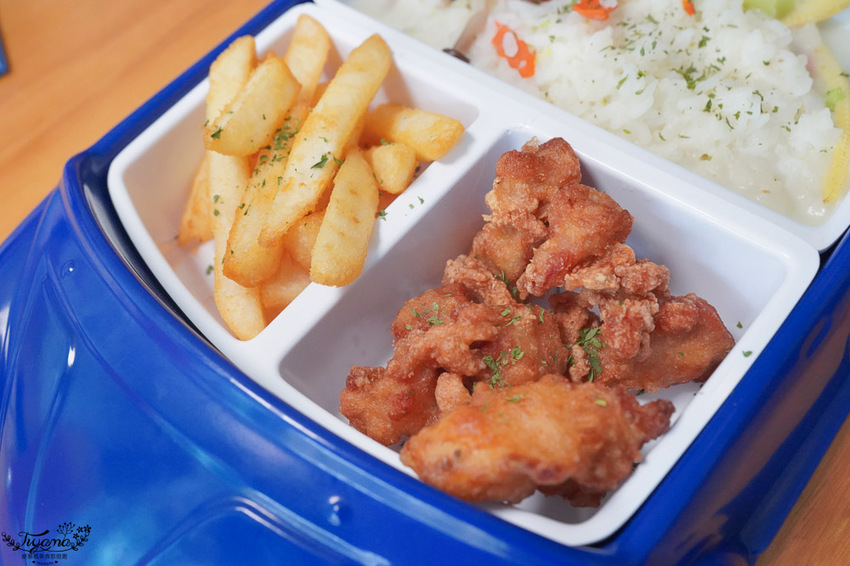 還有小朋友最愛的薯條和唐揚雞,唐揚雞比炸雞美味且健康許多,可愛車車造型更是擄獲寶貝的心。