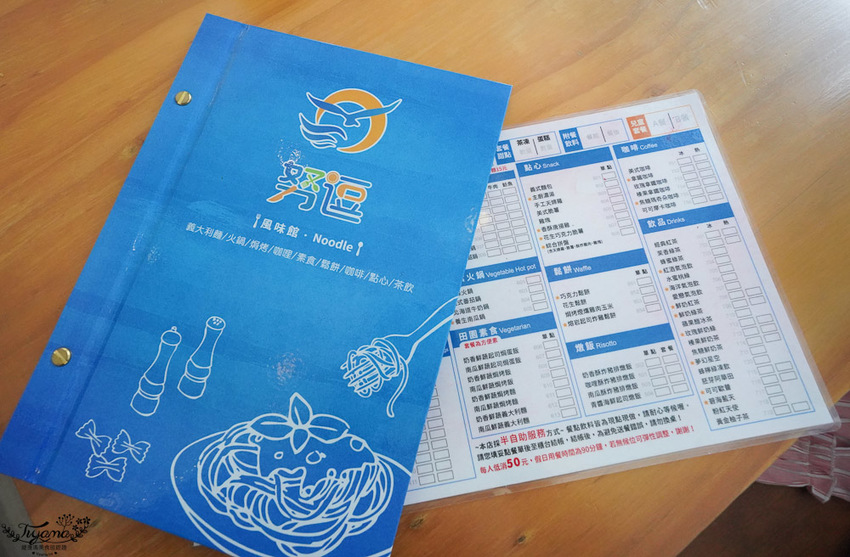 努逗風味館嘉義店是1+2樓的用餐空間,外觀的蔚藍海洋風,相當搶眼,令人有想踏進餐廳的魔力。