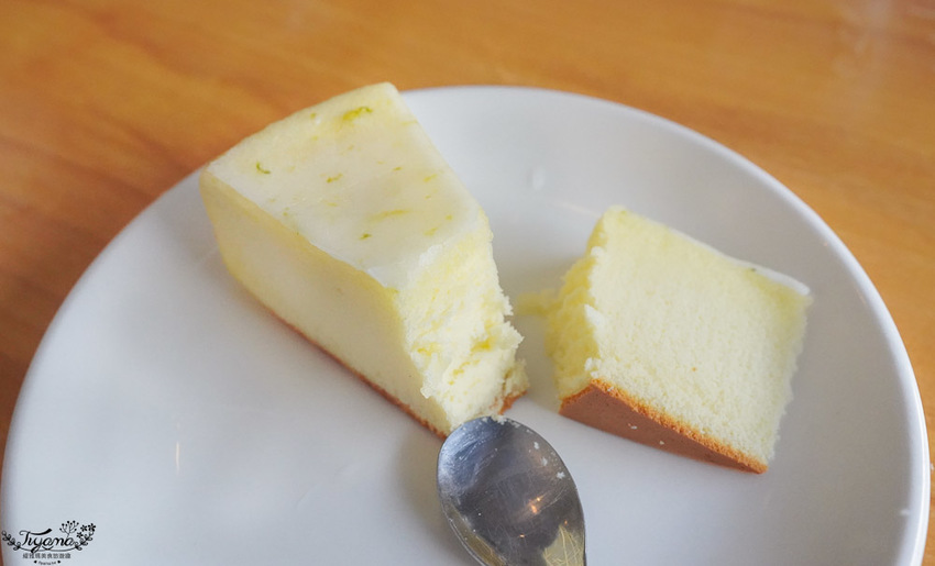 甜點可選蛋糕、茶凍二擇一,蛋糕是檸檬霜蛋糕,上層檸檬糖霜沙沙的口感,酸甜解膩。