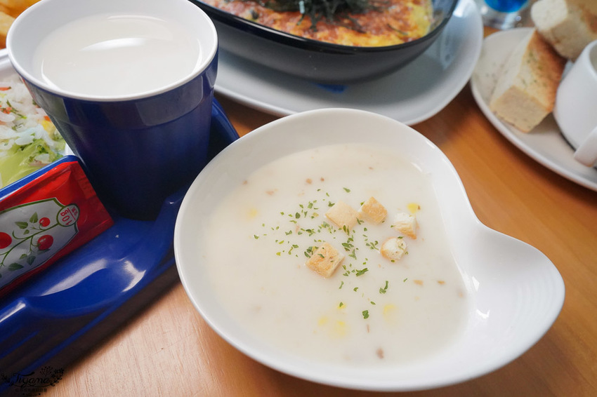 兒童餐附主廚濃湯和兒童愛喝的可爾必思(乳酸飲料)