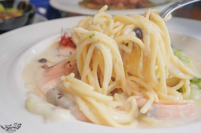 軟硬度適中的義大利麵條,整個緊裹著奶油白醬,滑順好食,是最快被清光的一盤^^