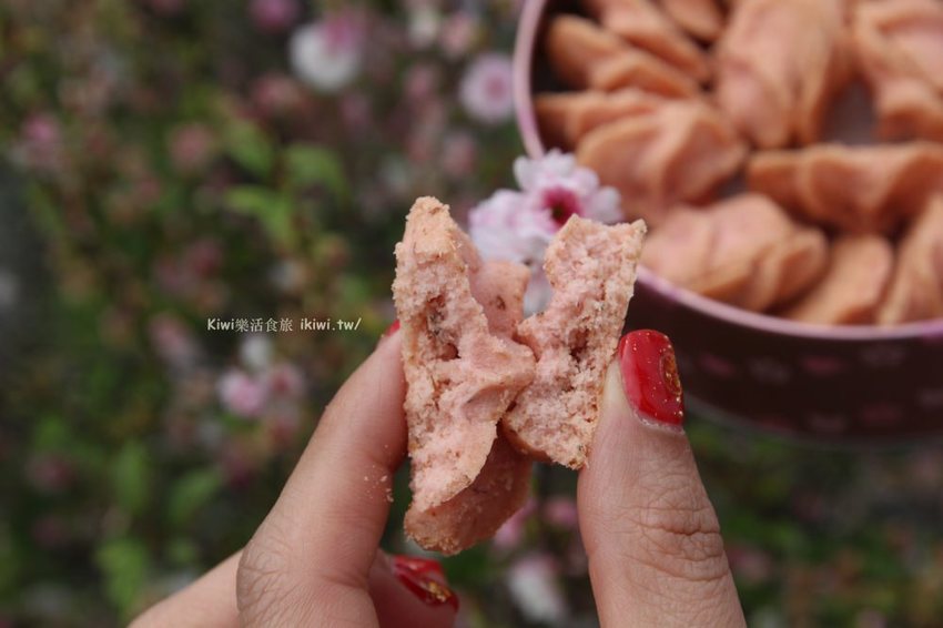 撥開後會發現裡面有櫻花花瓣在裡頭,櫻花的粉嫩讓溫感烘焙突發起想加入甜菜根的色調,輕柔又捨不得吃耶!口感上比較鬆軟,不用過多的咀嚼就輕鬆入口,一咬下曲奇餅散發著淡淡的奶香味卻不膩口,櫻花香氣是很淡雅的,淺嚐一杯茶,在吃上一塊餅,美食搭襯生活更加燦爛。