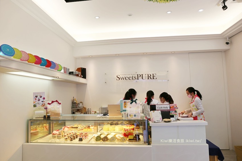 溫馨的店面設計,最先映入眼簾的是甜點櫃啊!上面的六吋慶生蛋糕、慕斯甜點、日光蛋糕捲(店內限量熱銷商品)都好誘人。網路評價好的SweetsPURE溫感烘焙,是很多新人的摯愛,客製化的彌月禮盒、手工餅乾禮盒,都是很棒的選擇唷!