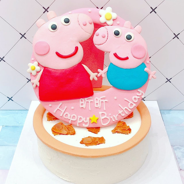 (上圖佩佩豬卡通源自網路,下圖為Whoscake客製化佩佩豬、喬治豬造型蛋糕)