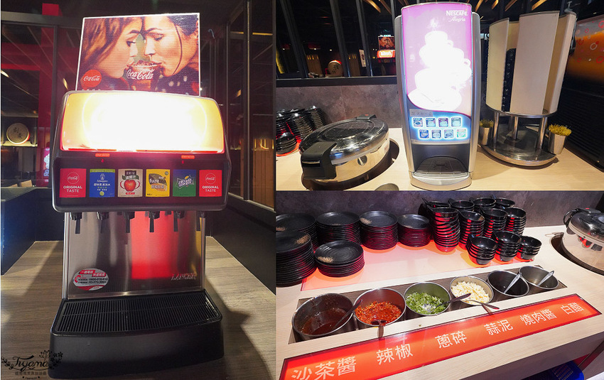 飲料選項眾多,有知名吳家紅茶冰的4種茶品:復刻紅茶、麥茶、綠茶、冬瓜茶,還有可口可樂系列飲料,美粒果柳橙和乳酸風味冰沙,白飯與調味料也都通通自取。