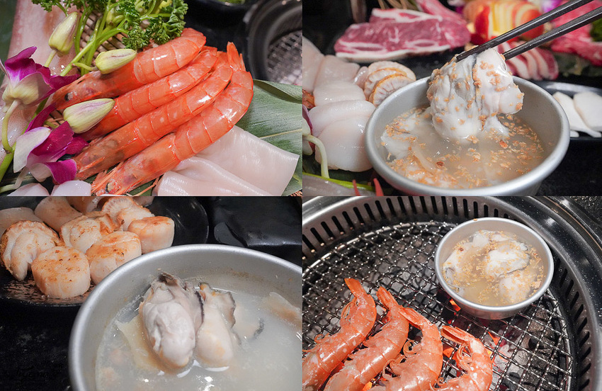豪華特色:16~18道高檔肉類、海鮮(美國肋眼、厚切牛舌、干貝、天使紅蝦…等)