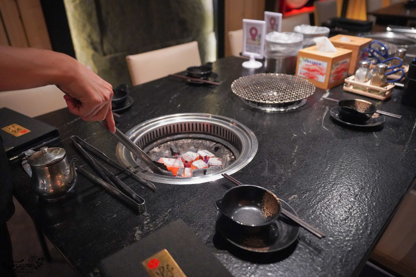 野村之所以這麼受歡迎是採「純炭火燒烤+熊熊造型湯底火鍋」,炭火爐側吸式設計讓用餐環境沒有燒肉店的碳燒味,這點很加分。