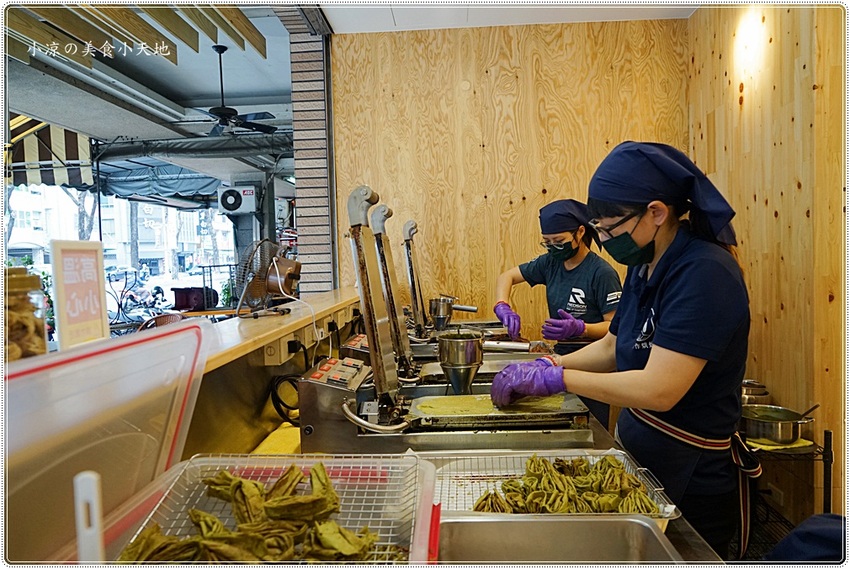 現場製作八女抹茶手工蛋捲,這可是老闆飛到日本福岡買回來的限量八女抹茶,一樣與麵糊交融後