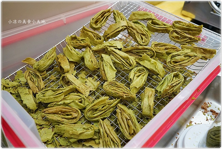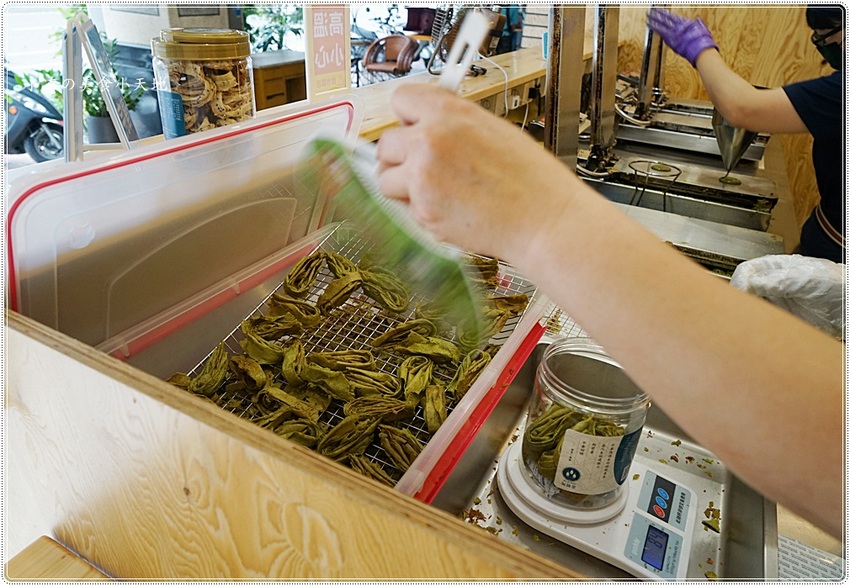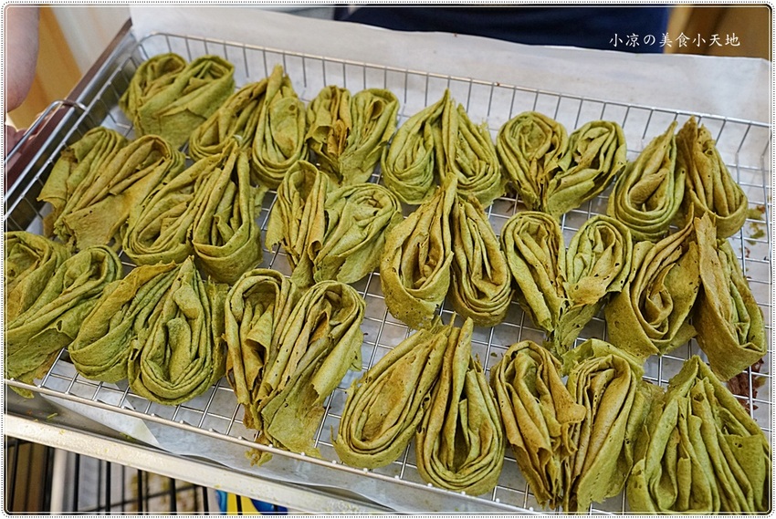 剛做好的八女抹茶手工蛋捲還得放置著,待涼才能酥脆不回潤….