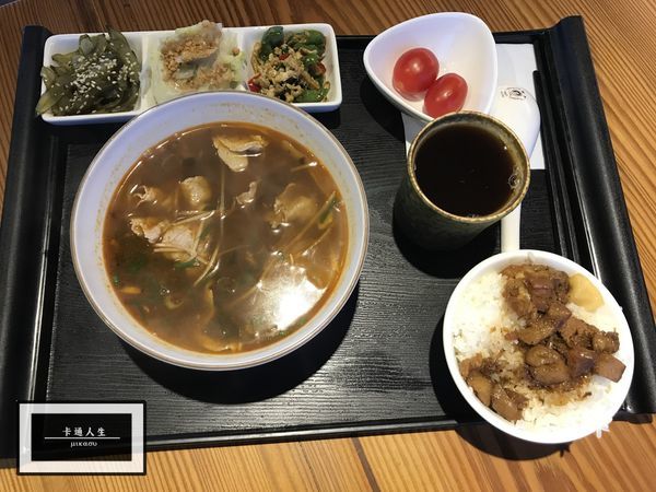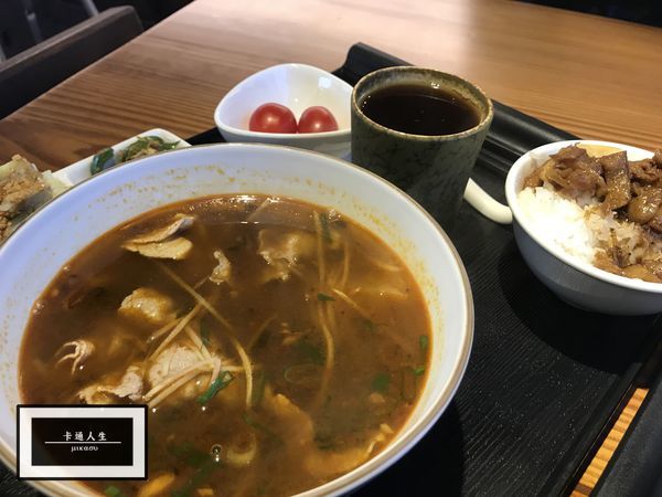 牛肉湯個人覺得還算不錯,如果常去台南的應該就能想像這個味道,因為他們得有點紅燒的感覺,所以味道會比較重一點,突然喝到會覺得很像泡麵的湯,附餐的茶還滿不錯的,有點解膩;肉燥飯比較像是南部的肉角飯,個人覺得算不錯,雖然偏貴,但是因為在景點內部,景點又不收費,個人覺得可以(・ω´・ )