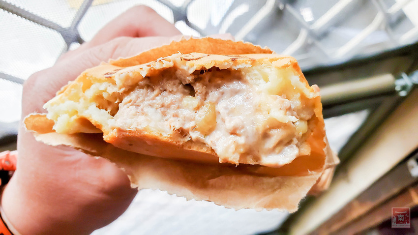 剛剛看現場製作的時候感覺餅皮會很厚,但咬了第一口後感覺到餡料都快爆出來了,餅皮很薄,餡料滿滿,紅豆是使用來自萬丹的紅豆熬煮的,紅豆煮的很軟爛,在嘴裡不會很甜。