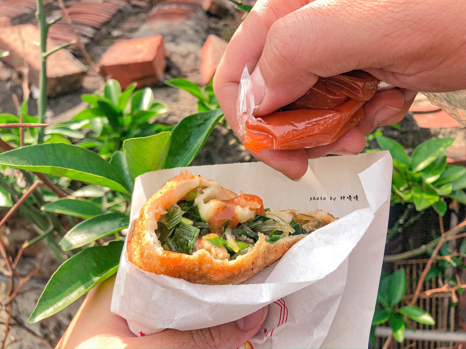 裡頭咬下是滿滿的韭菜、肉末和冬粉