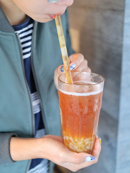 ▫️冰茶的QQ椰果好討喜,散發荔枝清香,果香清爽解膩。大家愛的黑糖波霸也沒少,珍珠Q彈有水準,純鮮奶一大杯才65,絕對是喝茶聊天的好去處啦!