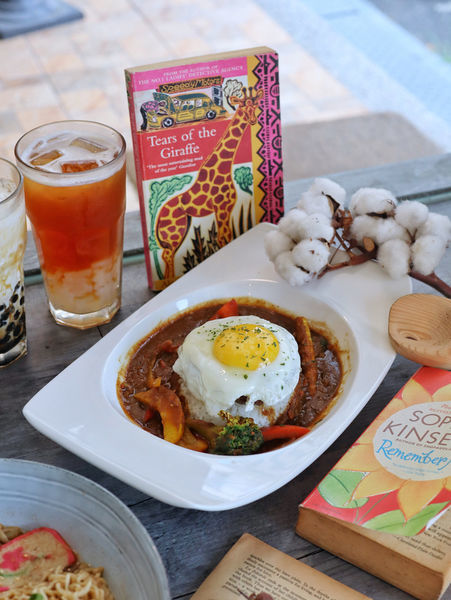 中間還有台三輪車載著各式雜誌書籍跟擺設,標語也都滿可愛,到處都有適合打卡拍照的角落呢。