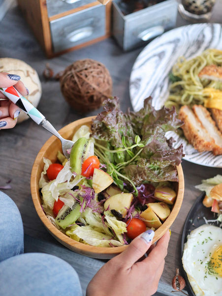 ▫️這應該是我近期吃到最便宜的木盆沙拉,滿滿一盆分量很足,生菜葉跟水果都有,搭配的水果優格醬帶有清爽的柳橙香氣,輕盈不膩口,很適合女孩。店內的醬料大多是店家自製,相當用心。