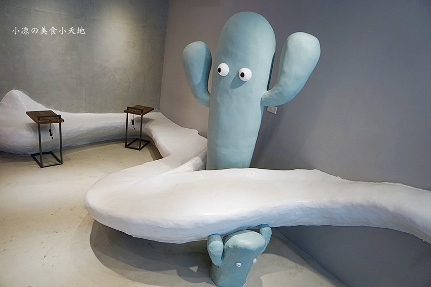 提供小桌子可擺放貝果或是氣泡飲料,椅子整個就是酷似仙人掌撐起XD
