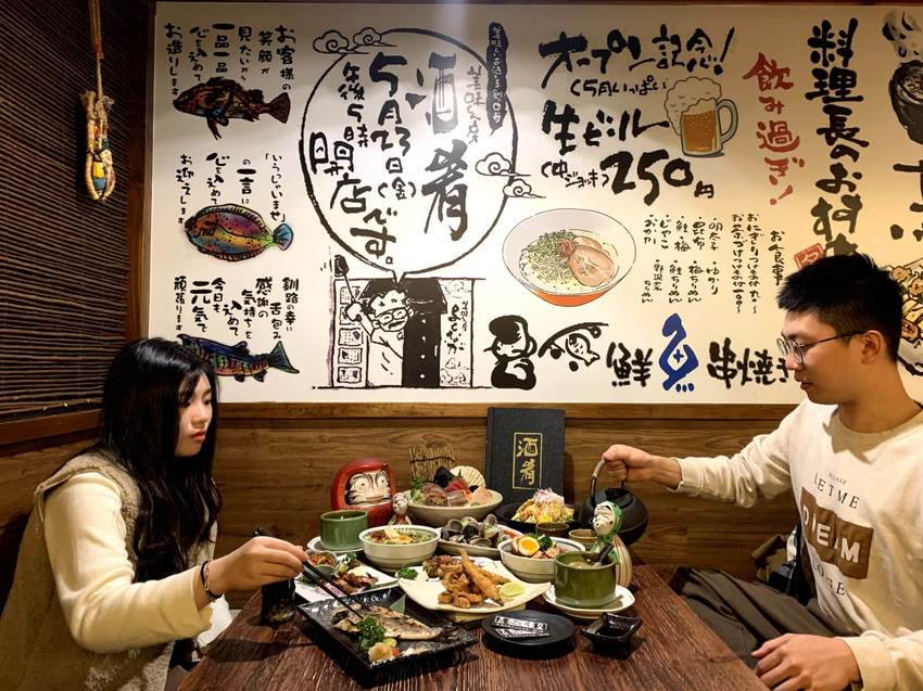 酒肴居酒屋中午也有營業,這一區是靠窗的座位區,也可以當作一個大包廂,人數16-20人是沒問題的。