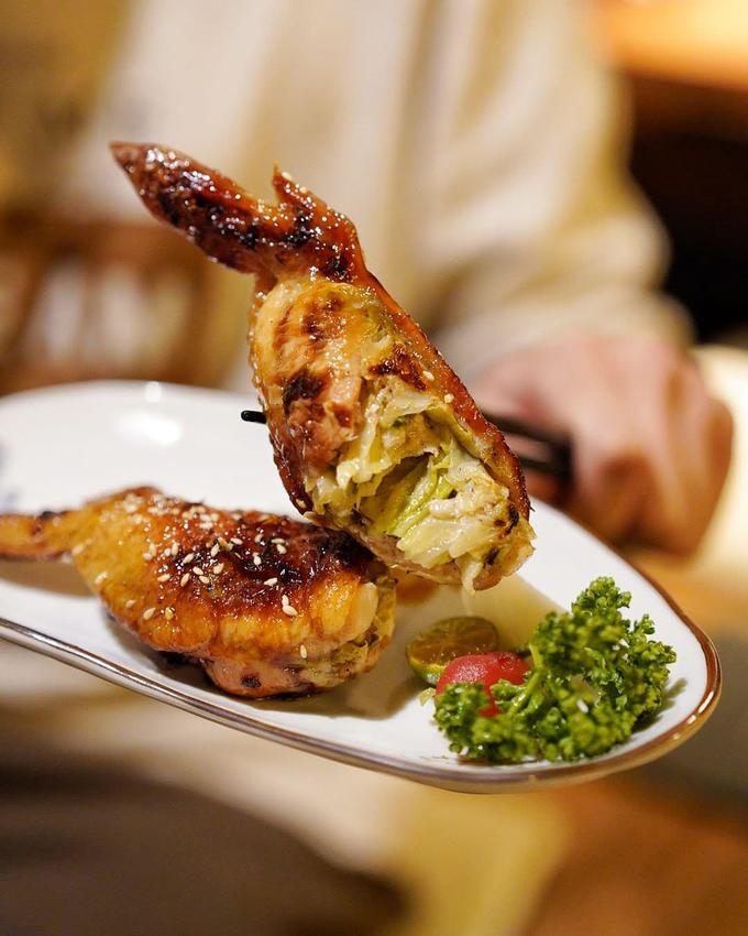 燒き5擇2,剝皮辣椒雞翅除了包覆著剝皮辣椒之外,還有滿滿的高麗菜,一口咬開能感受到清脆多汁的口感,雞翅本身的醬汁鹹中帶甜挺涮嘴的,這道我蠻推薦的!