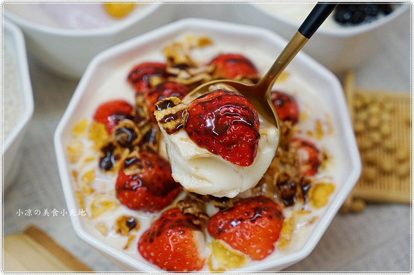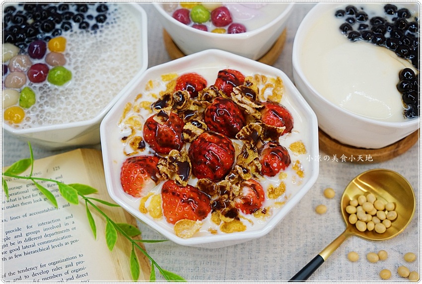 牛奶的湯底跟著豆花、草莓、麥片形同了三角關係,入嘴後的風味卻又融洽的令人著迷