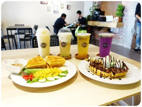 囊括了"咖啡"、"鮮萃茶"、"歐蕾"、"水果花茶"、"義大利麵"、"燉飯"、"鍋物"、"披薩"、"鬆餅"、"義式三明治"...還有炸物可以點
