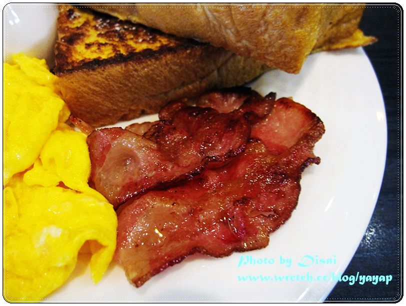 旁邊培根脆脆嫩嫩的,也很好吃!我喜歡跟炒蛋搭配著。