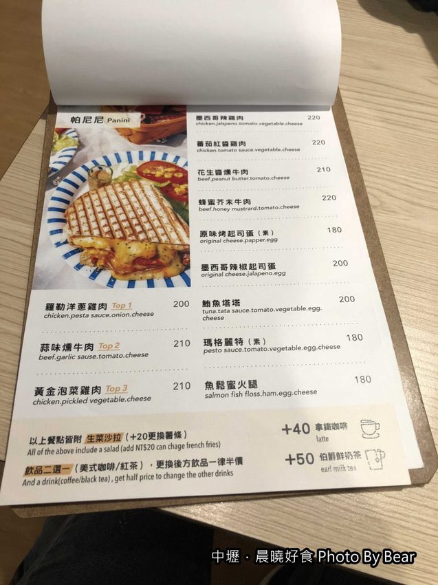 除了早午餐盤,其它大多是可頌/軟法和帕尼尼等麵包類的餐點