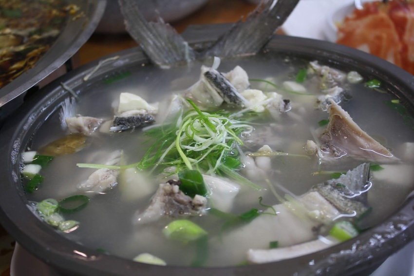 用剩餘的魚頭魚尾和些許的骨邊肉煮的魚湯 , 裡面還有加了一點豆腐