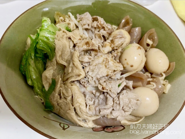 凱伊凡必點配搭:科學麵+大陸妹+豬肉片+豬皮+鳥蛋+炸豆皮=145元,兩個人吃剛剛好。我喜歡他們滷汁用醬油膏、蔥蒜、香油及沙茶拌勻,讓平凡的食材每一口都變得美味。喜歡吃這味的,不妨試試看喔!