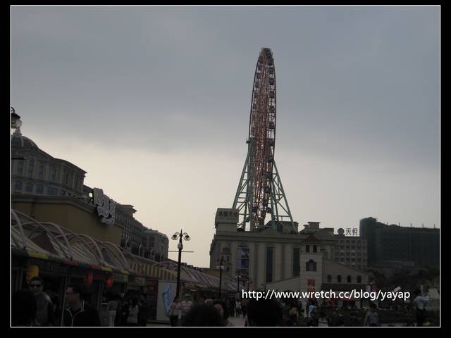傍晚的現在,光線不太好!本來是想要去搭那摩天輪,可是排隊人挺多的,就也放棄囉!