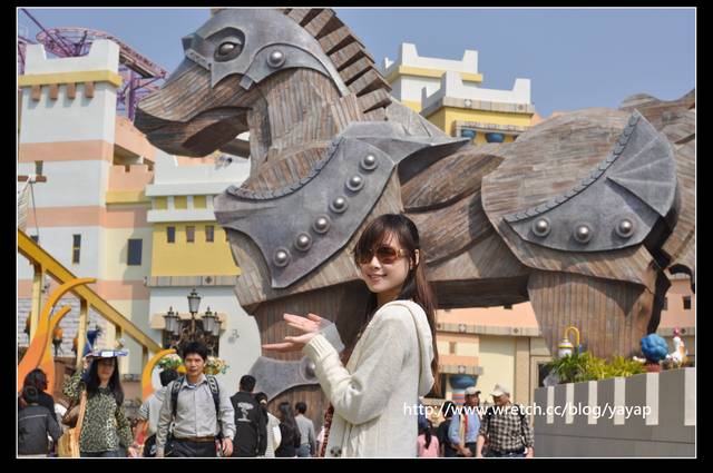 接著接著,就到了特洛伊城區!看到這批大木馬,每個人都想要拍照吧?