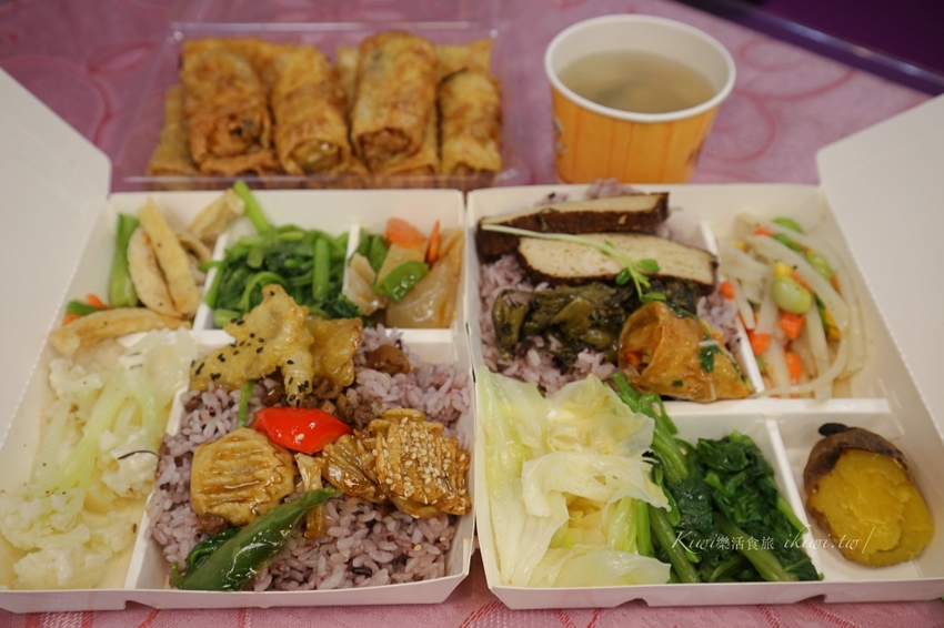 便當六菜一湯$59元,由店家自行為您做搭配不選菜,若想吃其他食材也可以採用秤重方式來點餐,或是即熱食品都可外帶回家自己變成一桌佳餚,對愛蔬食者真的是一大福音。