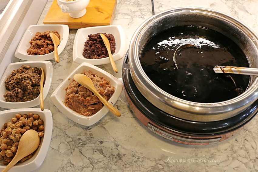 飲料有很多選擇性,老闆娘手工做的檸檬酵素飲、冬瓜茶還有現磨咖啡(假日限定)、美式咖啡都可以自行取用,以喝得完為主啊!自家熬煮的養生飲品與黑豆,杏仁麵茶也在櫃子上,讓養生飲品與懷舊風的麵茶回憶滿滿。
