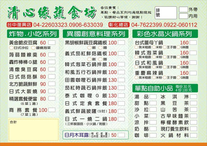台中清食堂養生蔬食百匯菜單2020/3