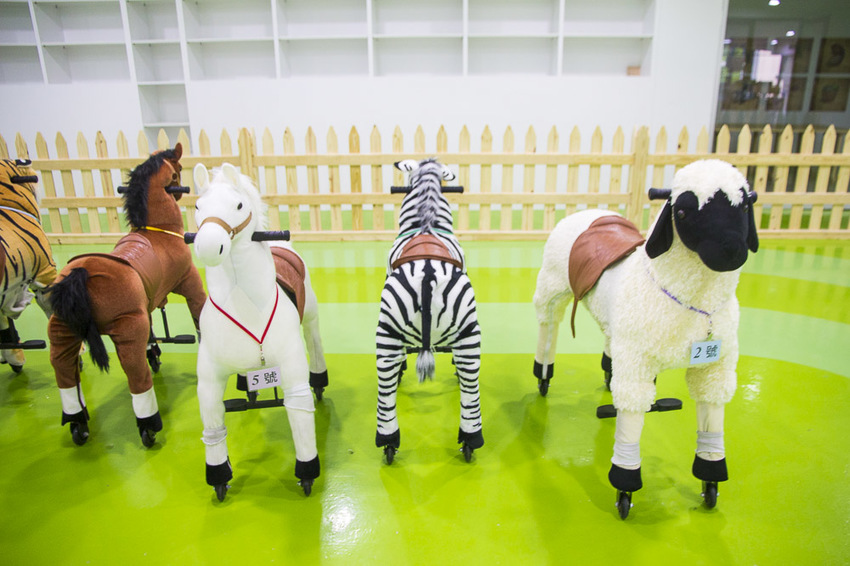 最特別的是設置了室內騎馬體驗場,各種電動小馬任君挑選,