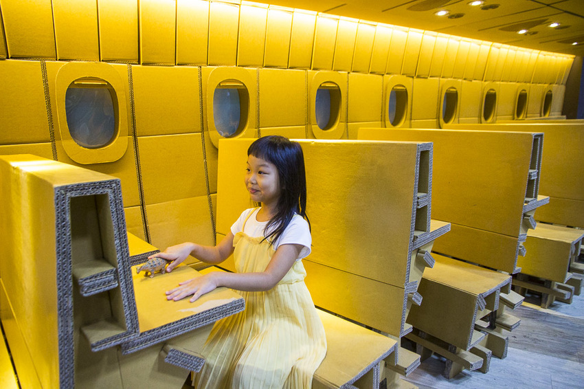 餐桌、坐椅、兒童餐椅都是以紙材設計製作。