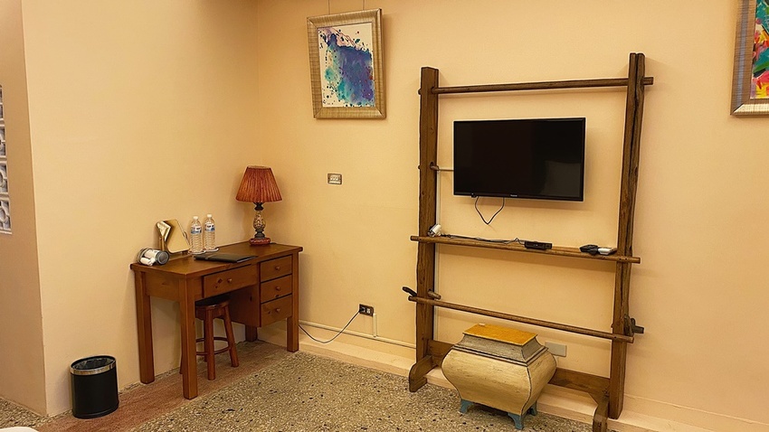 綠波池畔目前僅有兩間房,皆為老闆父母親手設計打造出來的空間。然後今天入住位於二樓帶點峇里島風格的房型,預留空間比一般飯店或民宿還要來得寬敞許多。電視為MOD系統,內建兒童和卡通頻道可以看。床鋪屬於中間偏硬的那種睡起來還算舒適,但頭枕比較高,有點類似抱枕的感覺,對於習慣睡記憶枕或較低枕頭的我來說,脖子就會比較吃力些,小小建議老闆可以提供兩種高度的枕頭供住客選擇,一點貼心的舉動就會有大大加分唷