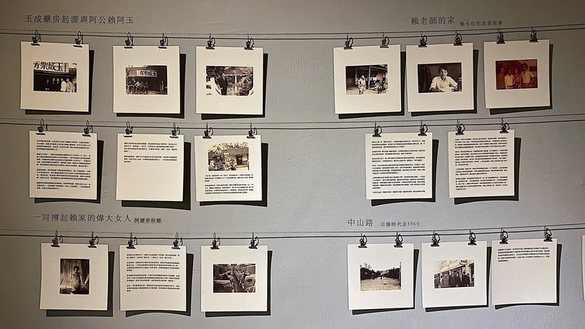 走廊部分以老闆賴家四代為主題故事貫穿了整間店,前身為老闆阿公所經營的玉成藥房(矮平房時期),後來才慢慢慢的經由當地國中老師退休的老闆爸爸之手改建成現在小透天的模樣。我自己很喜歡這種老照片加上帶點溫度的文字介紹,除了可以瞭解到某個人物或家族的背景故事之外,更可以從小地方放大至地區發展的縮影