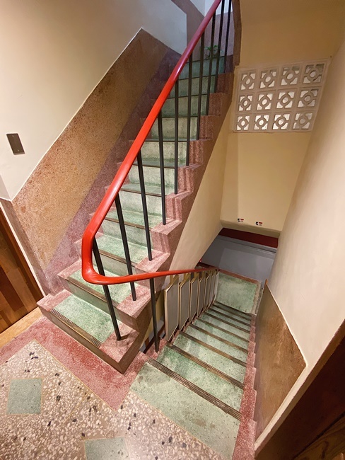也因為民宿是由老屋所整理的緣故,樓梯會比較陡且窄小,甚至上樓時還要小心頭不要撞到。而我自己很喜歡那紅綠色交錯的磨石子階梯,這種款式在5.60年代幾乎可說是家家戶戶最流行的配色。但後續因為成本較高,被新出價格較便宜且鋪設速度更快的建材所取代。