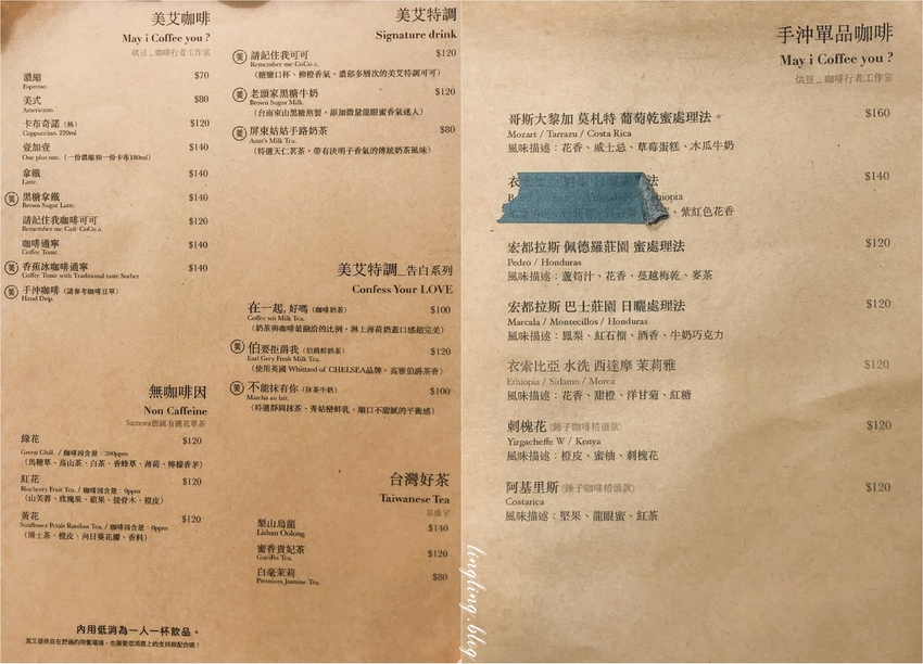 May i Coffee you?提供了這樣的空間,重點是不限時,不讓時間侷限了這份悠閒感,來May i Coffee you?享用一杯闆娘精心冲製的咖啡吧!