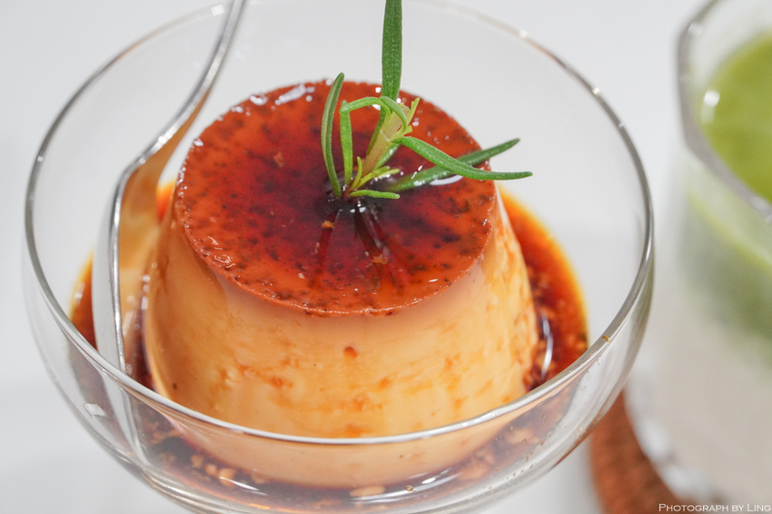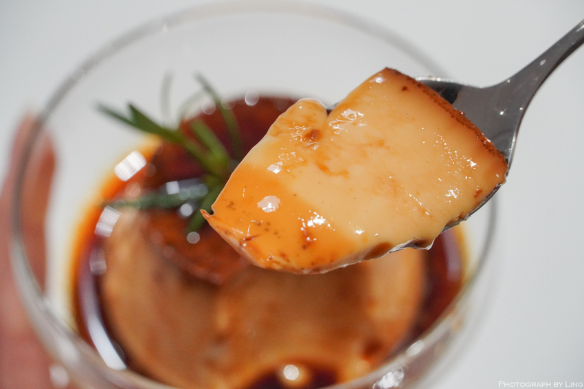 柔軟又綿密的手作布丁帶著香草香氣,沒有惱人的蛋腥味,淋上自家熬煮的焦糖,搭配布丁一起吃甜而不膩口,布丁本身不是一個複雜的甜點,總會讓人憶起童心。