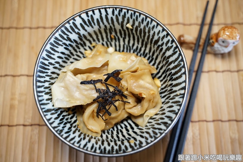 想要吃點點心配茶的話,比較重口味選擇的乾餛飩(45元),用的是偏鹹香的蒜泥醬,配上一口茶,剛好解下嘴裡滿滿濃厚的蒜味!