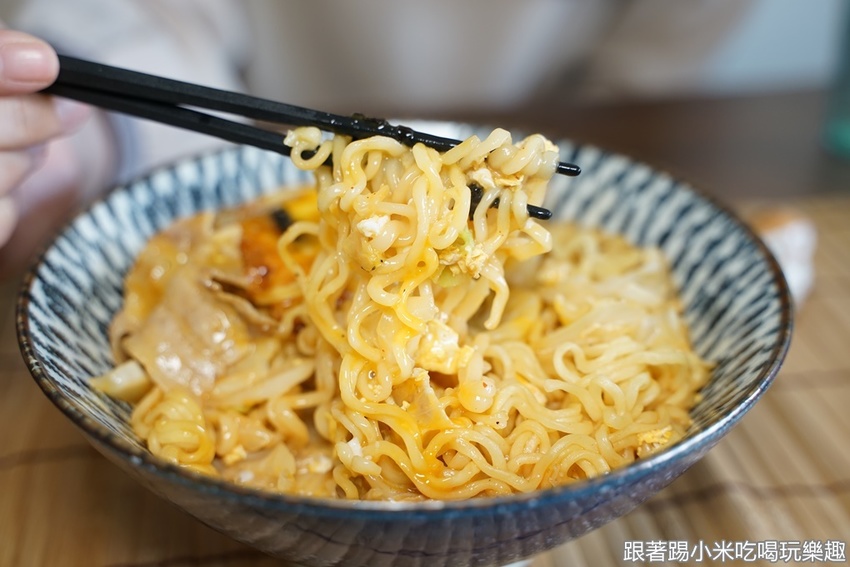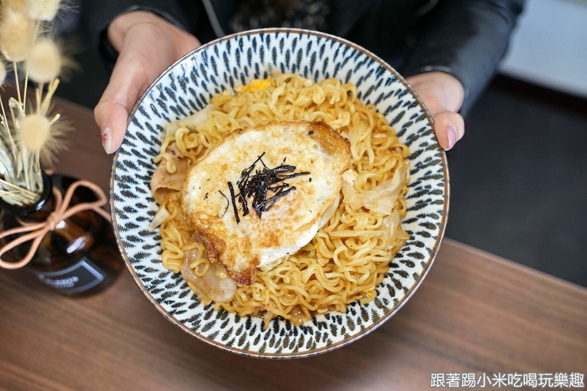 豬豬炒泡麵(120元)是屬於台式的泡麵,建議戳破蛋液會有滑嫩蛋香的口味,味道並不算重而是比較有蔬菜肉絲的味道,炒泡麵系列比較適合小胃又剛好肚子餓的人,小米比較愛唐揚雞咖哩飯XD