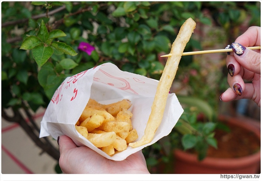 薯條也好吃,外皮酥酥的內心鬆綿,同樣灑了胡椒鹽很加分,自己就嗑完一包!這次沒買到雞腿跟米血好可惜,改天一定要起個大早來吃吃看啦