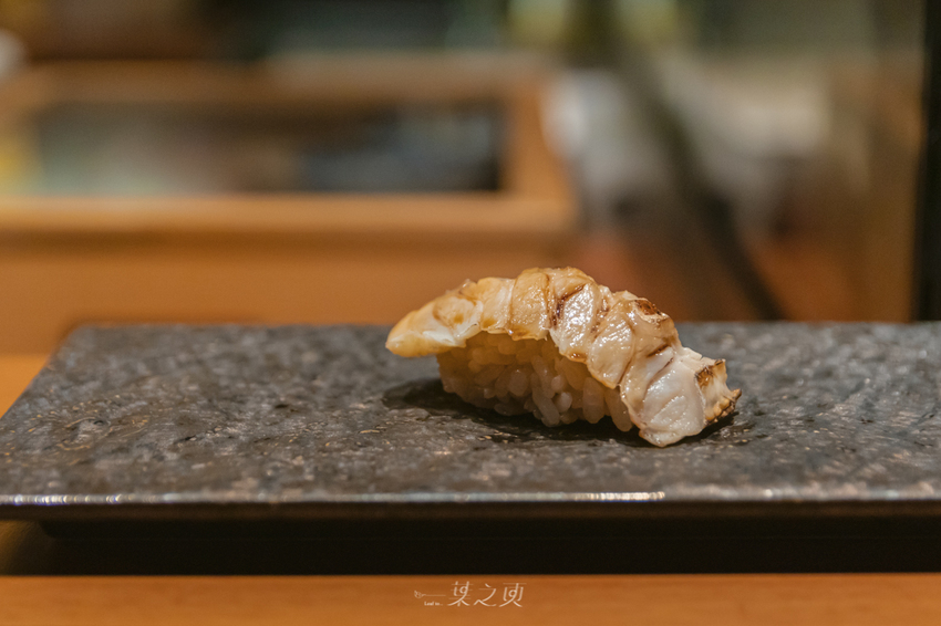 其實自己是無法在如此多種魚材當中,細細地分辨每種魚材其不同之處的,若是在處理手法或其調味上沒有太多變化,自己很快就會感到生膩了。但從頭一直吃到中途,自己卻絲毫不倦怠、反而還想著接下來阿龍師傅又會有怎麼樣的有趣呈現,更加期待了。