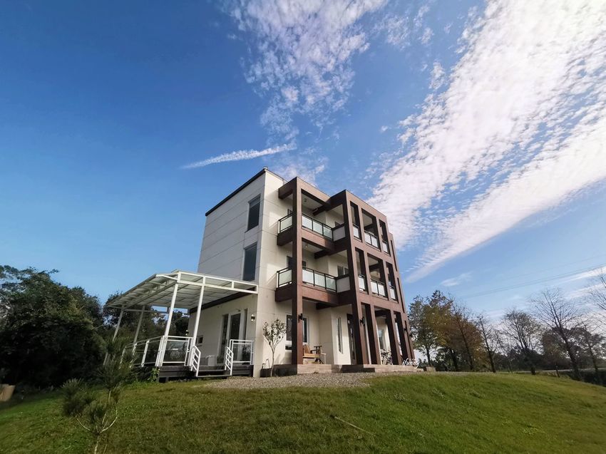 我們超幸運遇到了好天氣,一路來到位於員山的十六崁宜蘭民宿,心情特別地雀躍!在入住當天會先收到民宿主人給的密碼,大門口備有一個空地,至少可以停上四輛車都沒問題。