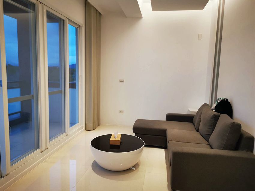 坐在這個沙發上,腳可以直接伸直放在茶几上,戶外的藍天白雲輕易取得,可以達到完全放空的境界。