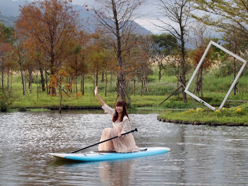 在湖面上,十六崁民宿主人準備了兩台獨木舟以及兩台SUP立槳,讓住戶體驗划船的樂趣。