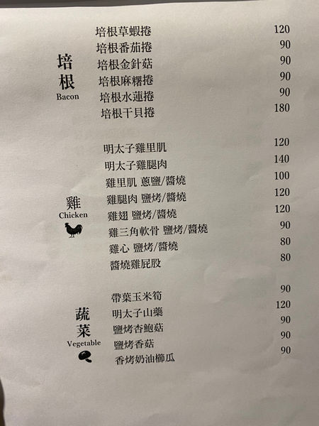 從左到右分別是 雞翅.豬五花.雞里肌.雞腿肉.嫩肩牛.雞三角軟骨.培根番茄捲