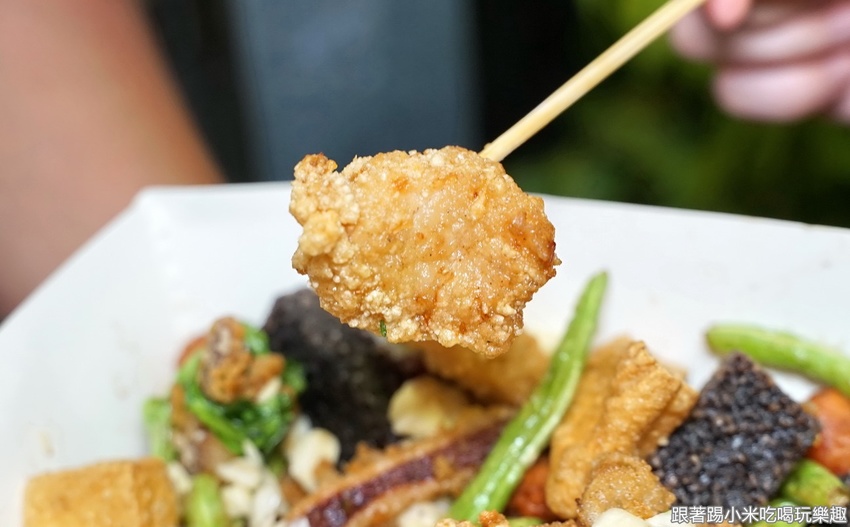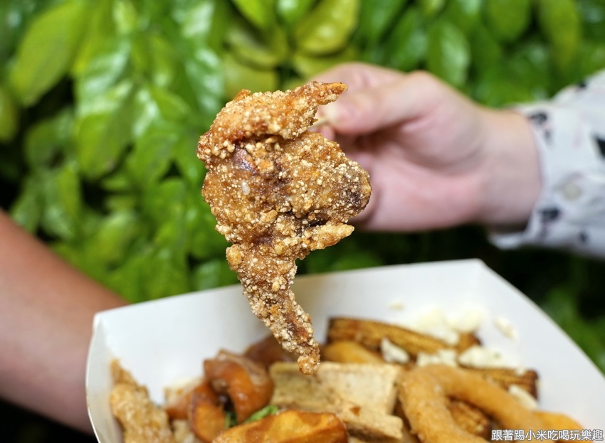 鹽酥雞也是傳統的鹹酥口味,雞胸肉來說還蠻嫩的並不會乾柴,搭著鹹鹹酥酥的皮來吃,再加上蒜香,配飲料或配啤酒也很棒喔!(謎之聲:今天網紅恰吉在,怎麼沒有啤酒呢?)